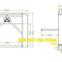 Kích thước của cổng xoay ba càng ZKTECO TS-200: