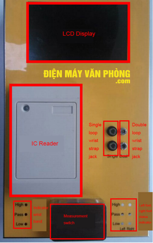 - Để kiểm tra dụng cụ cầm tay chống tĩnh điện, giày dép: Dây đeo cổ tay một dây, dây đeo cổ tay đôi, giày trái và giày phải